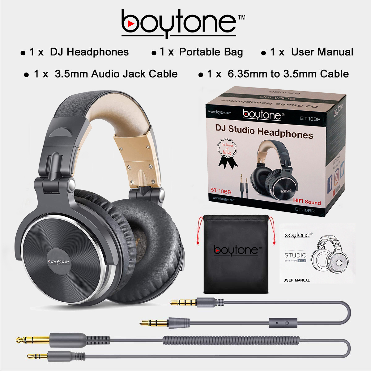 Boytone BT-10BR Wired Over Ear Headphones Studio Monitor & Mixing DJ Stereo Headsets with 50mm Drivers and 1/4 to 3.5mm Audio Jack for Audio Mixer Computer, Phone, Guitar, Laptop, Amplifier, TV