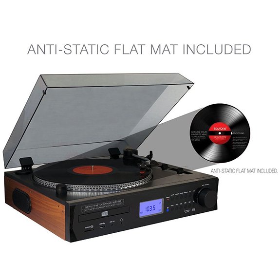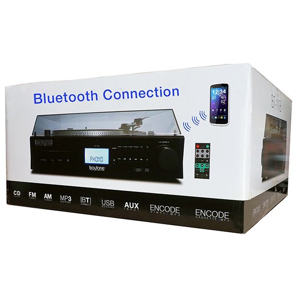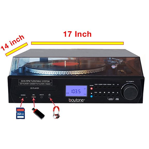 Boytone BT-11B Fully Automatic Large size Turntable, Bluetooth Wireless, 2 built in Stereo speaker, S-Shaped Tone Arm with Adjustable Counterweight & pitch control, AM/FM, CD, USB, SD, Cassette Playe
