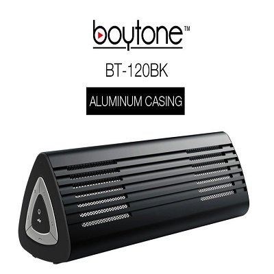 Boytone BT-120BK Portable Wireless Bluetooth Speaker, Built-in Microphone, 2 Stereo speaker, Rechargeable battery. Aluminum Casing. Works with iPhone, iPad, Samsung, Tablets and other Smart Phones
