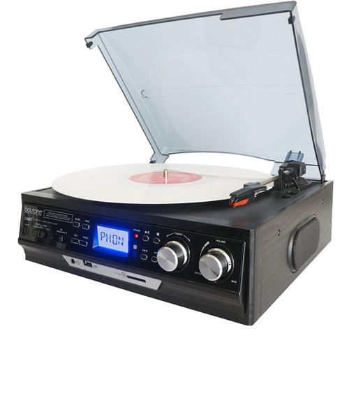 Boytone BT-17DJB 3-speed Stereo Turntable, 2 Built in Speakers Digital LCD Display AM/FM Radio, USB/SD Slot, AUX+ MP3 & WMA Playback /Recorder & Headphone Jack + Remote Control