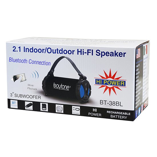 Boytone BT-38BL Portable Bluetooth Indoor/Outdoor Speaker 2.1 Hi-Fi Cylinder Loud Speaker with Built-in 2x3 Sub and SD Card, USB, USB Charger, AUX, FM Radio, Built in Rechargeable Battery