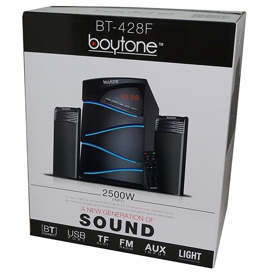 Boytone BT-428F, 2.1 Bluetooth Powerful Home Theater Speaker System, with FM Radio, SD USB ports, Digital Playback, 50 Watts, Disco Lights, Full Function Remote Control, for Smartphone, Tablet.
