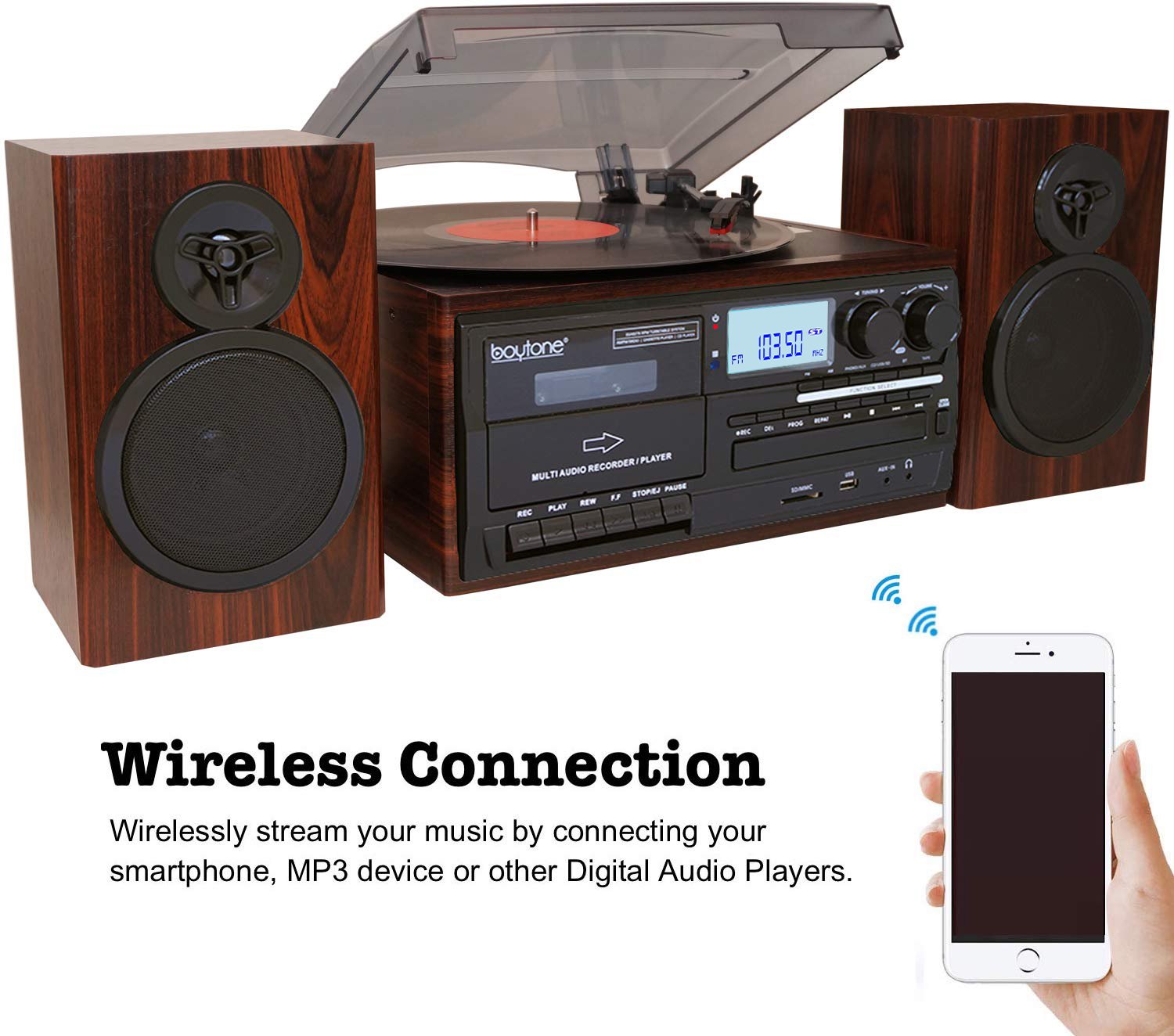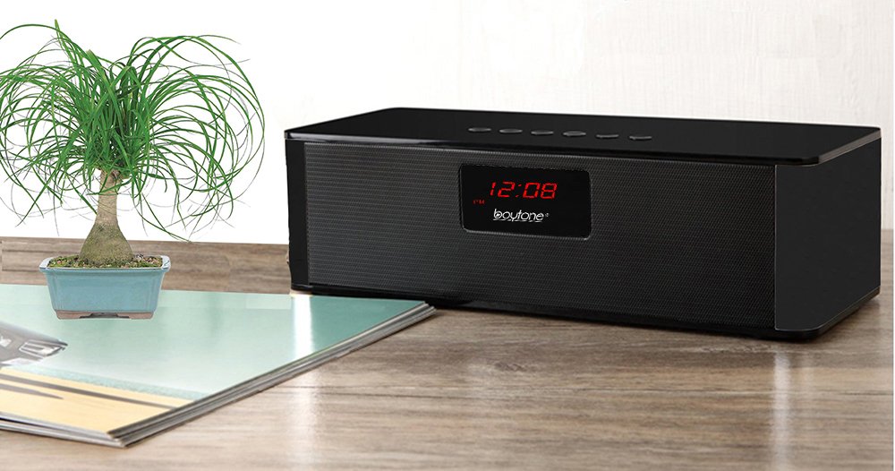 Boytone BT-87CR Portable FM Radio Alarm Clock, Wireless Bluetooth 4.1 Speaker, Built